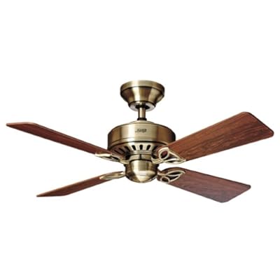 This is a Hunter Bayport 42-inch four-blade ceiling fan with antique brass fixtures: